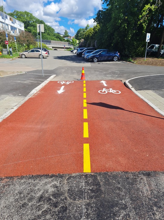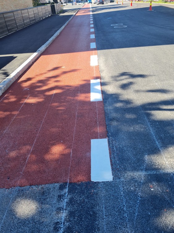 Bygging av ca. 140 m nytt fortau på ca 3 m bredde, 100 m med nytt opphøyet sykkelfelt på 2,2 m bredde og 5,5 m bred veibane. Opparbeidelse av torg med rundkjøring (2 armer og 1 avkjørsel) og kjørebane på et ca. 1000 m2 stort område. Ny avkjørsel på 5 m bredde fra Ris skolevei, lage sykkelpassasje for å stenge dagens kjørevei og legge til rette for kobling mot fremtidig sykkelvei, samt etablering av grøntområder og belysning.