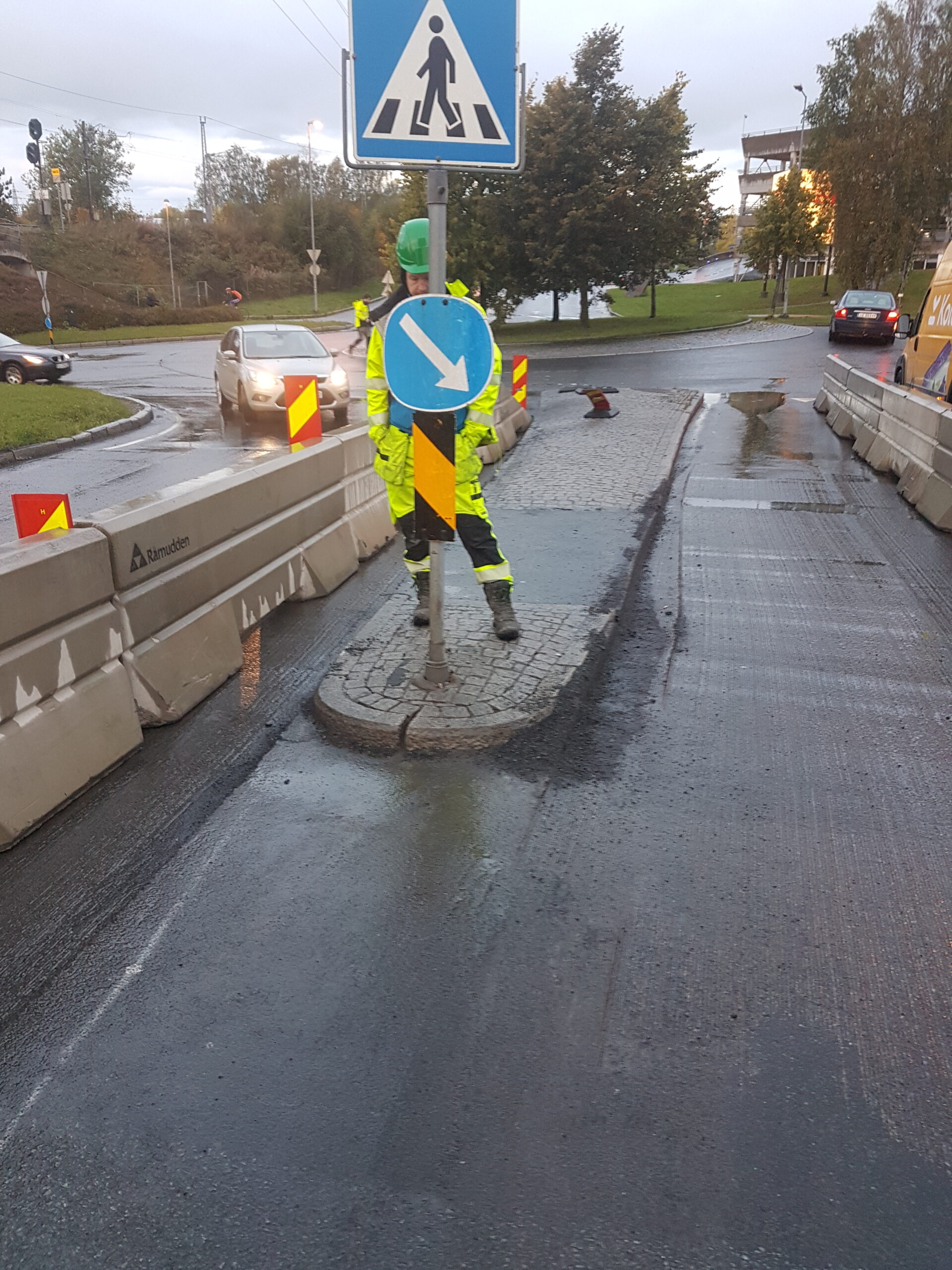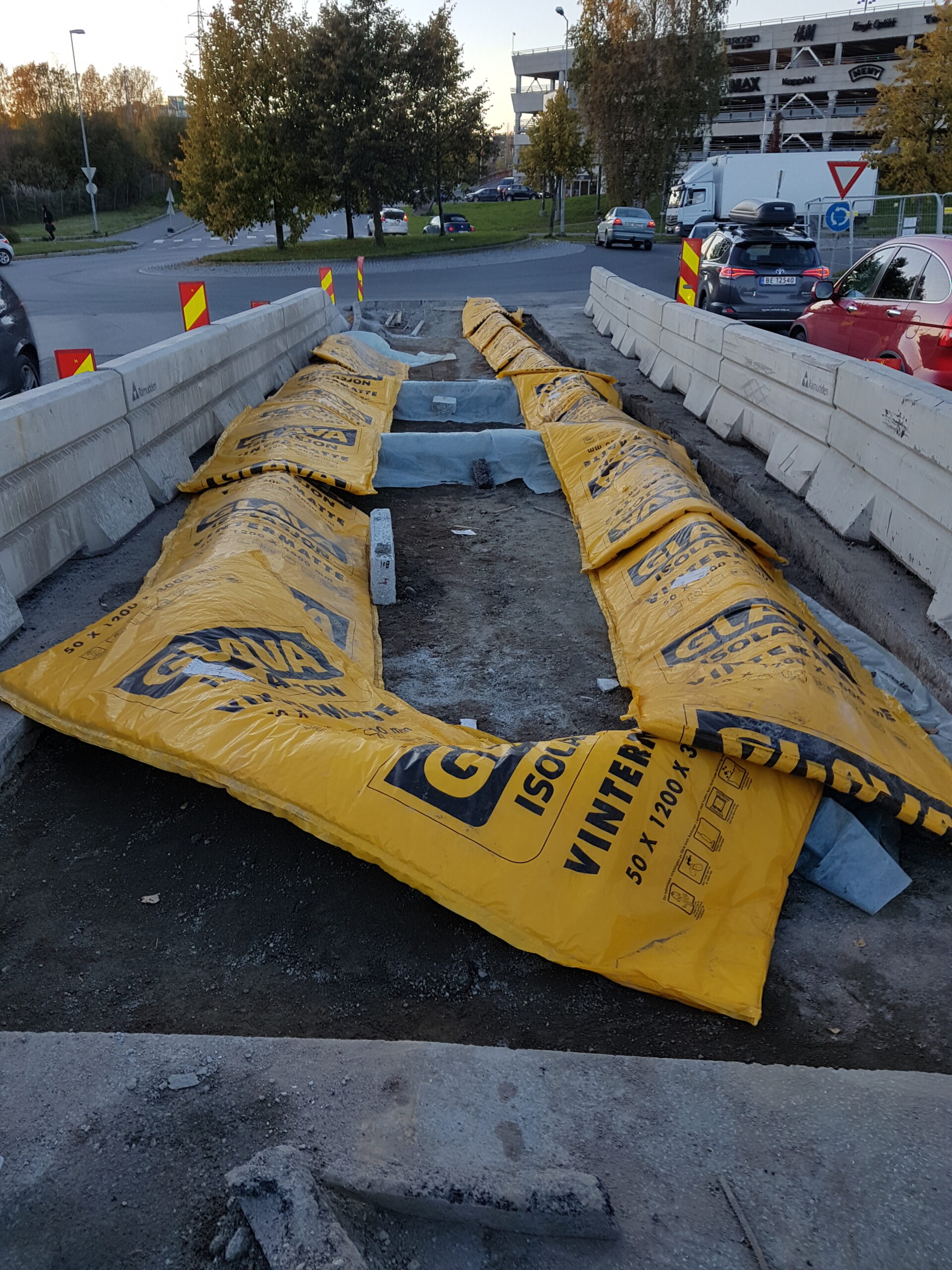 Eksisterende trapeshump fjernes, store deler av rabatt fjernes. Bygge ny rabatt og ny trapeshump samt en rabatt mot bensinstasjon