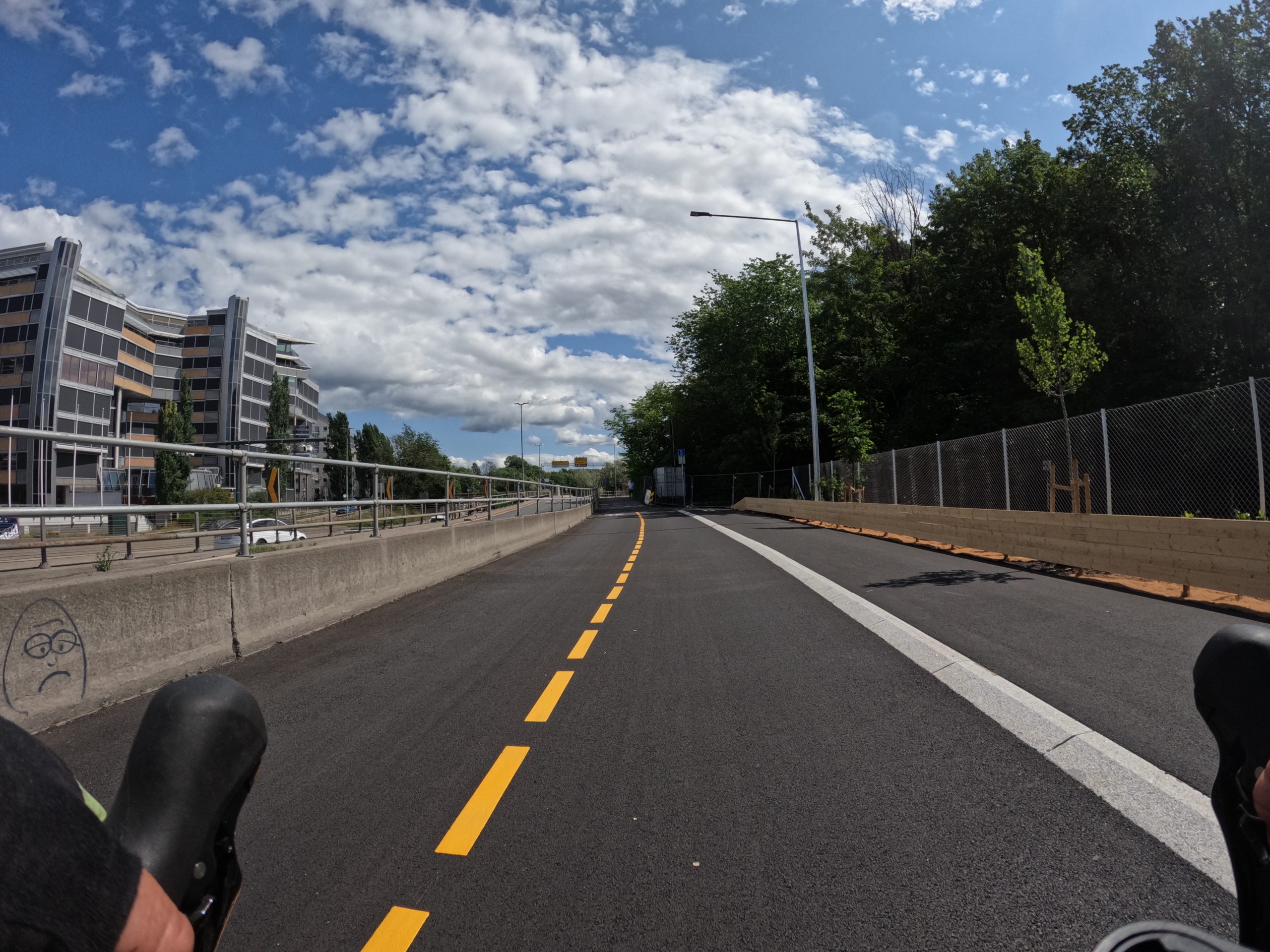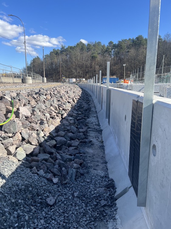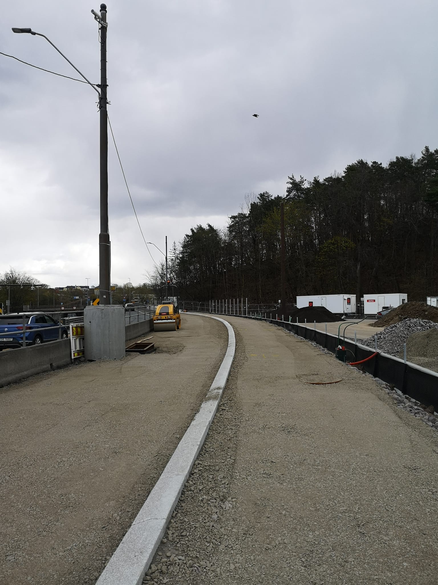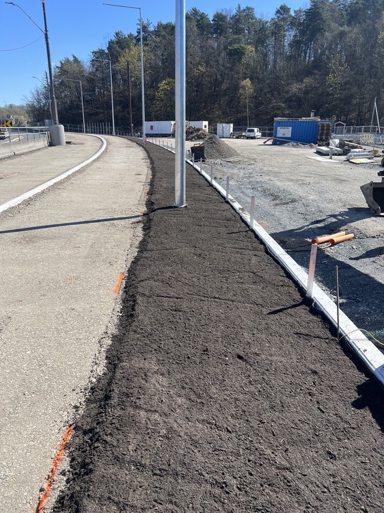 • Setting av ny, skrå kantstein i granitt mellom sykkelvei og fortau, ca. 150 meter
