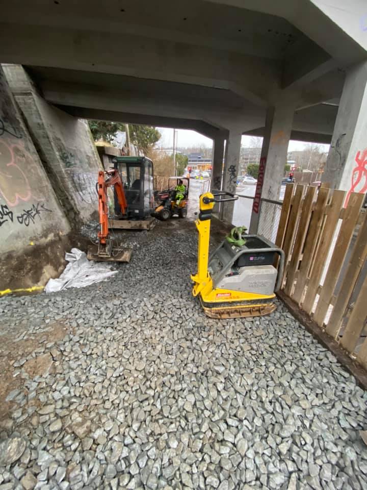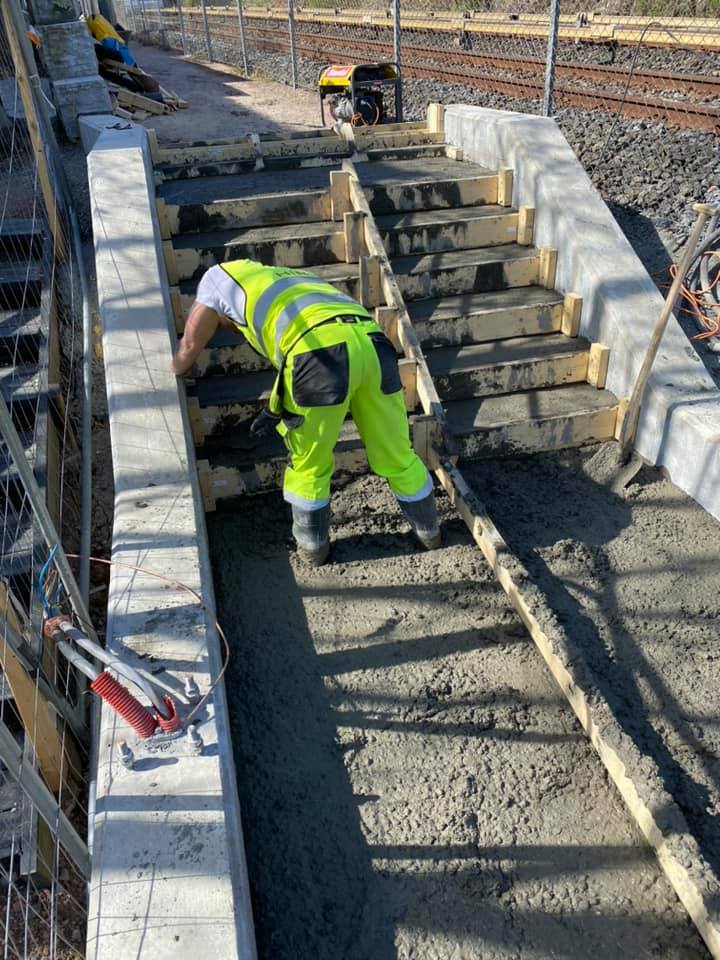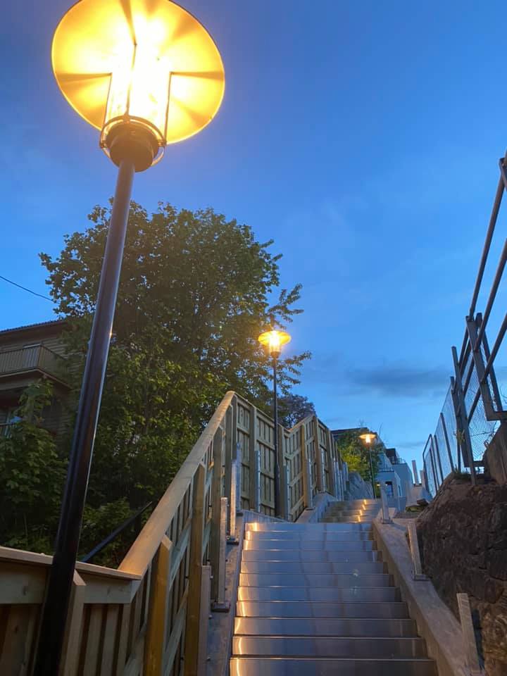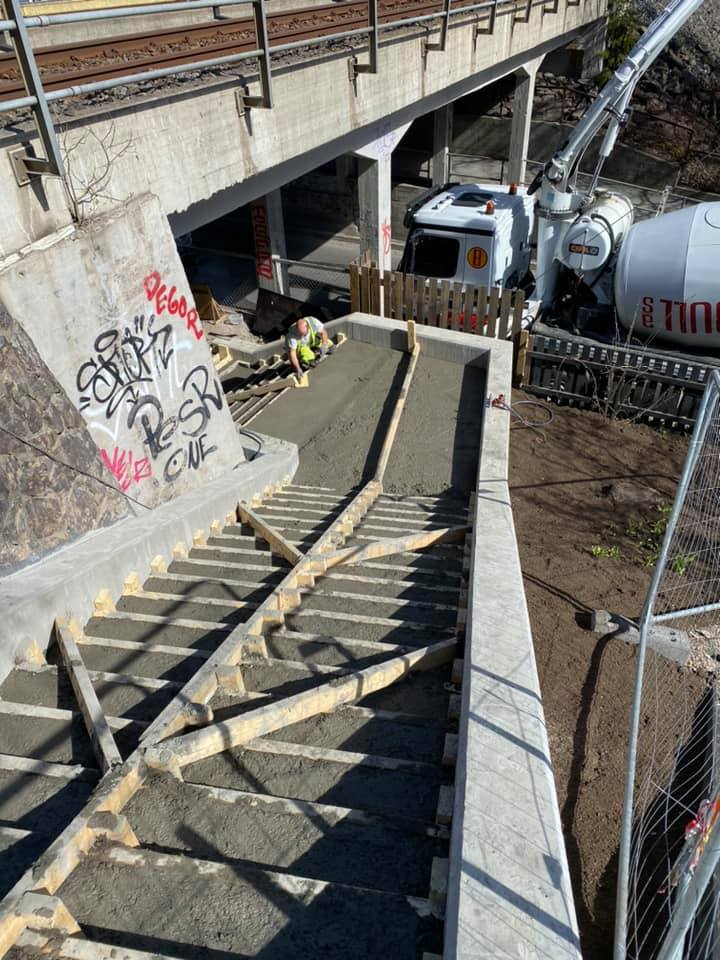 Anlegget omfatter utskifte av prefabrikkert støttemur mot banetrase, asfaltlegging av gangvei, oppsett av lysmaster, kantsteinsarbeider og konstruksjonsarbeider med oppgradering av trapp.