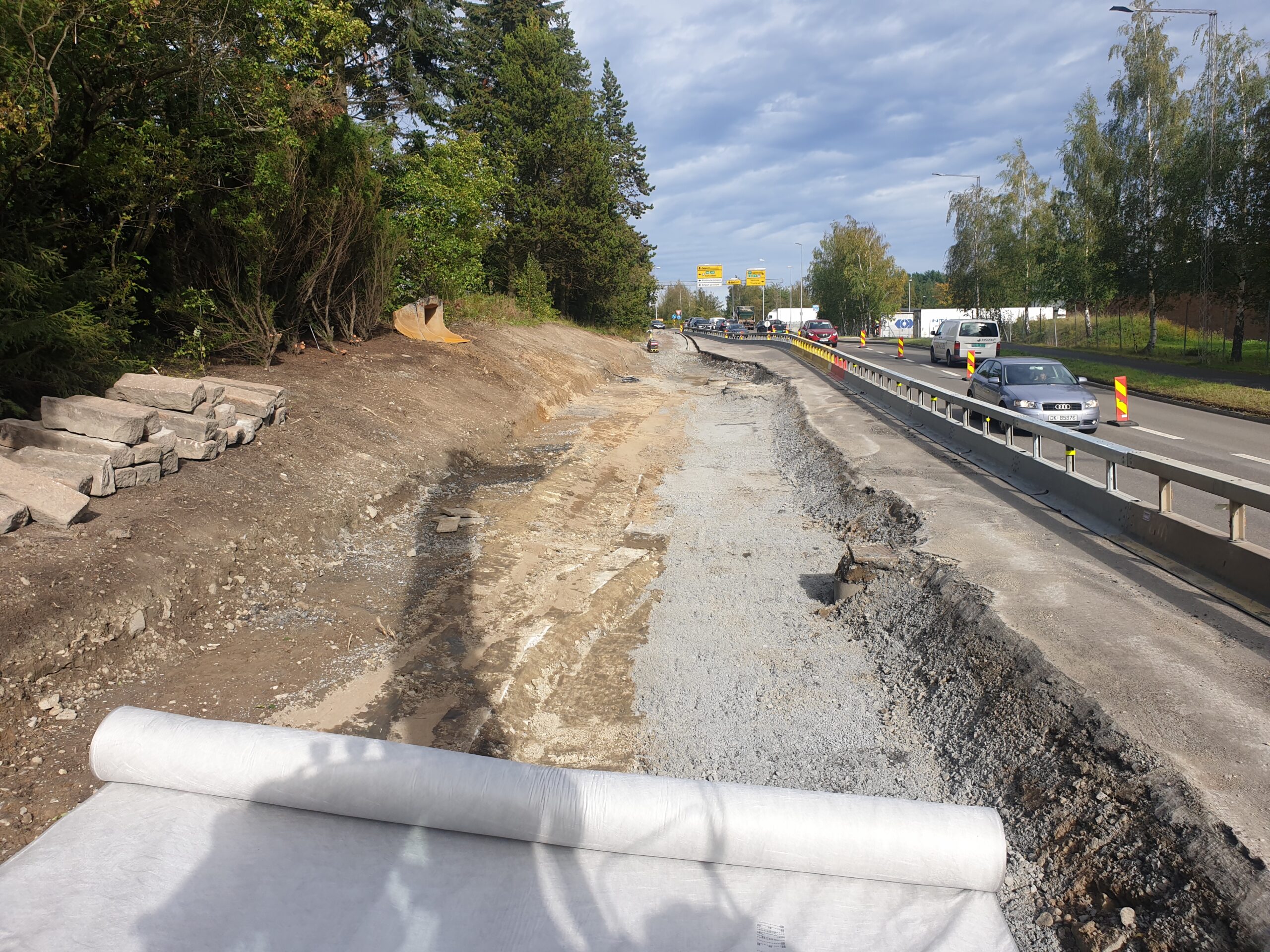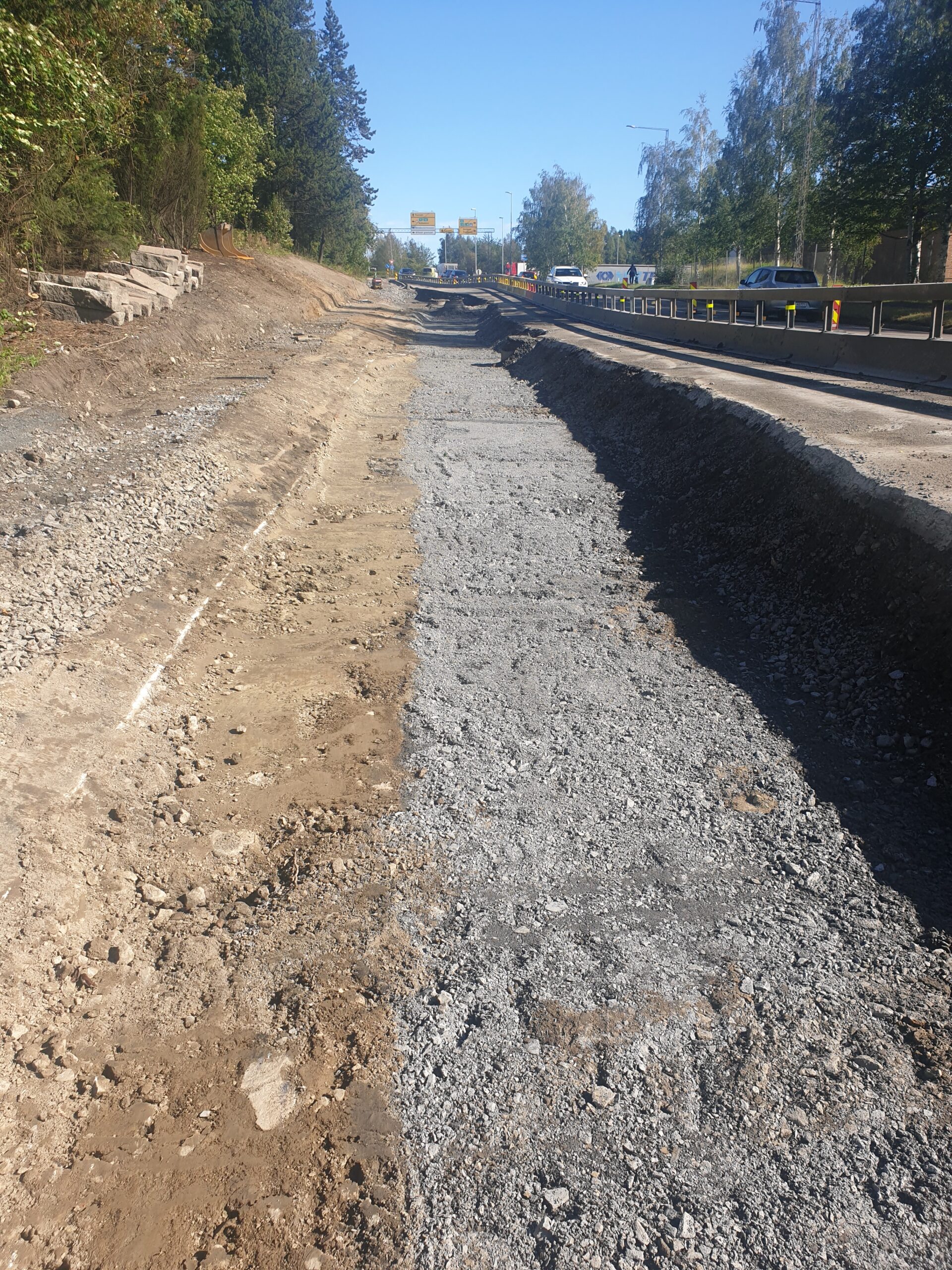 Anlegget omfatter, etablering av sandfangskum, oppbygging av ny fortau og kollektivfelt, kantsteinsarbeider, asfaltlegging, merking og skilting.