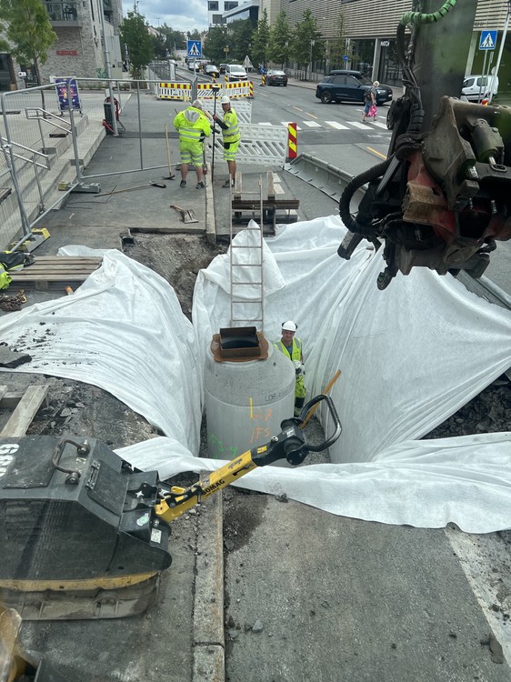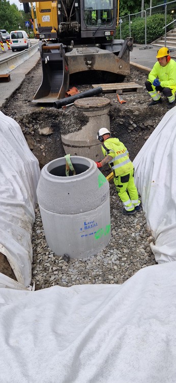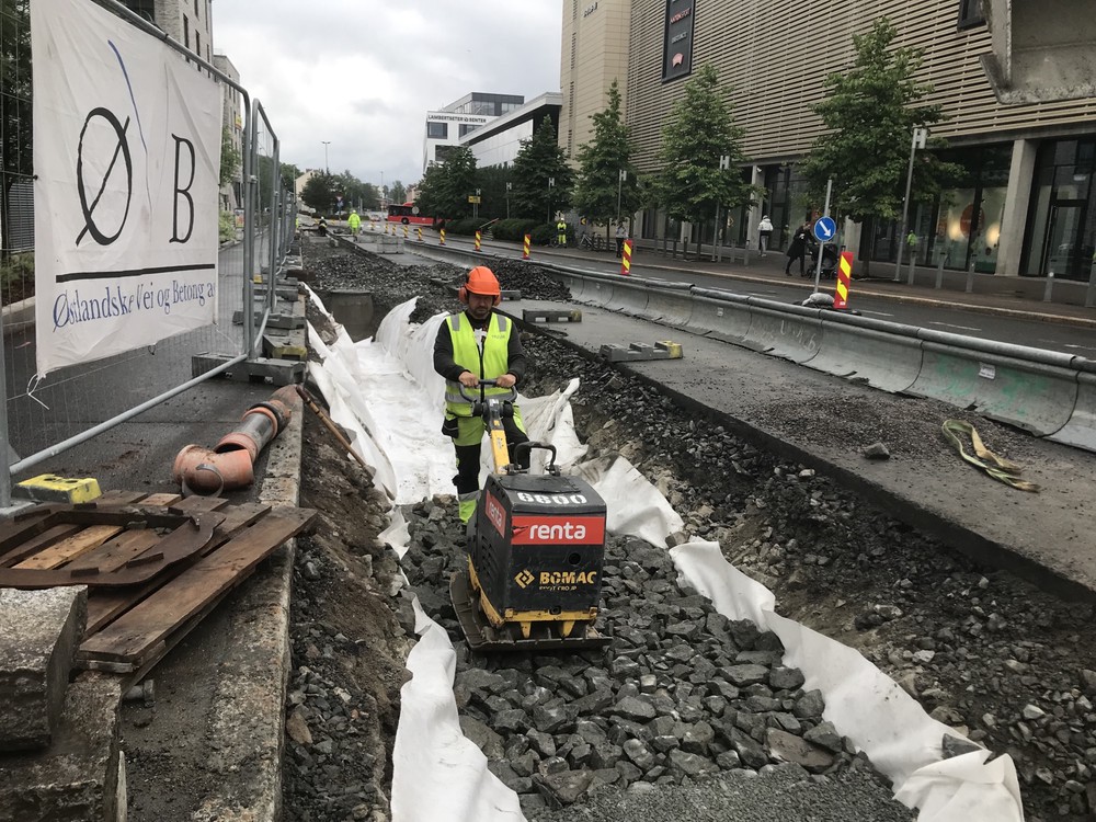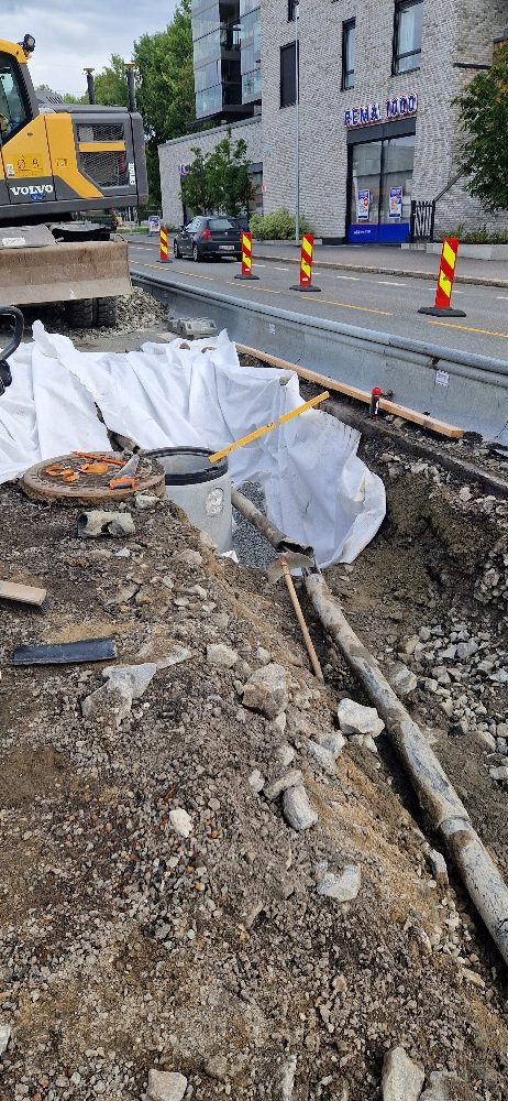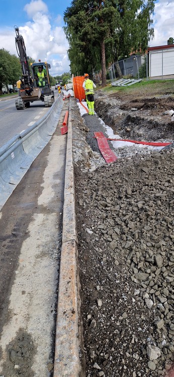 Kryssinnstrammingen og oppgradering til opphøyde sykkelfelt forutsetter overvannstiltak, herunder ensidig regnbed ved Lambertseter senter.