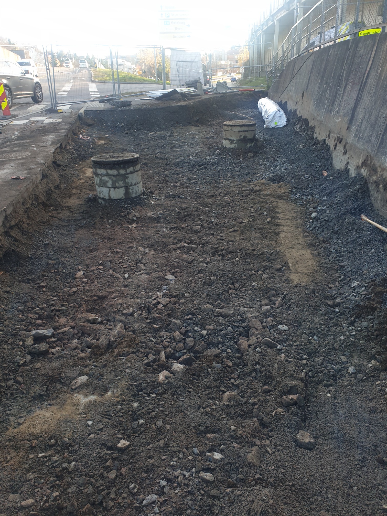 Prosjektet går ut på å bygge en midlertidig bussholdeplass med kantsteinsstopp, hvor det skal bygges en 2 m bred rabatt som er definert for venteareal for av og pålessing fra buss. Arbeidet omfatter også ombygging av 2.0 m bredt sykkelfelt, hvor deler av eks. fortau i nordlig retning må rives for å nå formålet. Eksisterende fortau breddeutvides.